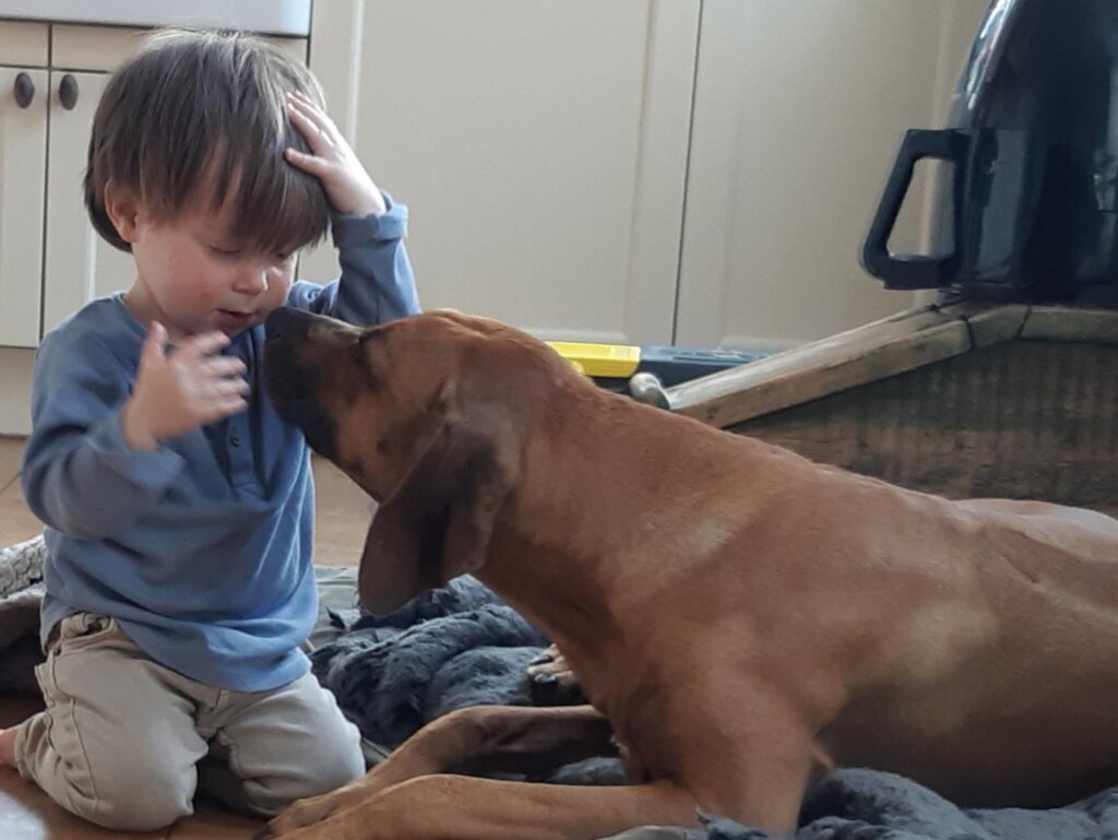 Come per qualsiasi altro cane, insegnate sempre ai bambini come avvicinarsi e toccare il vostro Rhodesian Ridgeback e supervisionate tutte le interazioni tra cani e bambini piccoli per evitare morsi o tirate di coda da entrambe le parti.